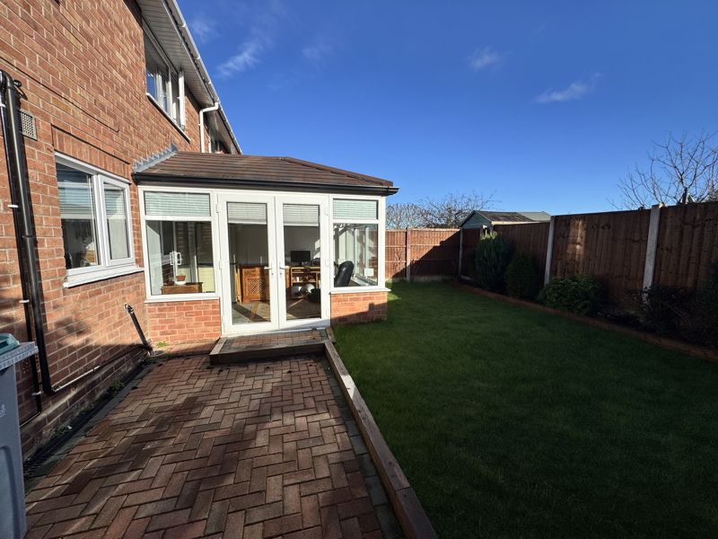 Outside - 0 - To the front of the property there is a gated, private driveway to the side leading to the detached single garage with metal up and over door, power and lighting The front garden is laid to lawn with assortment of trees and shrubs and blocked paved path. Gated access from the front to the rear garden. The rear garden is fully enclosed and is mainly laid to lawn, there are raised plant bed to the edge with small shrubs and a block paved patio area. Access to the garage through a uPVC door.